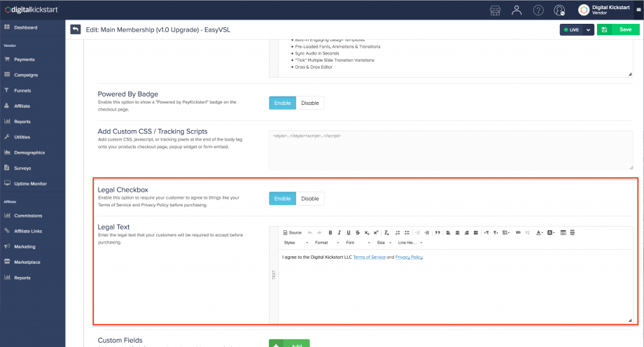 3. Adding a Legal TOS or Disclaimer to Your Checkout Page