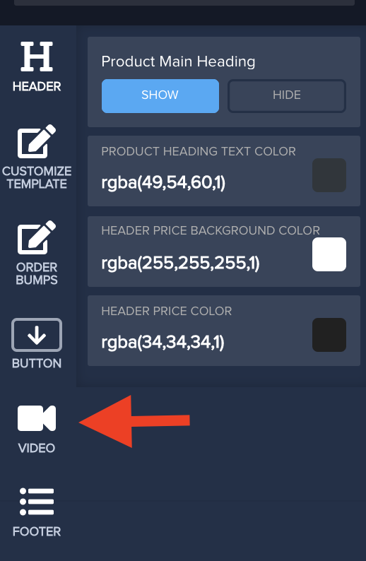 Inside the template editor will be a video option to embed the video to the checkout page via iframe.