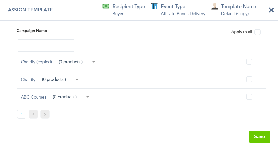 Step 3: Choose the campaign(s) and product(s) you want to use the email template for by clicking on “Assign”