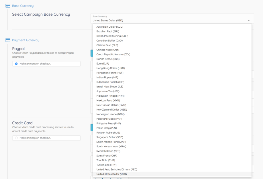 Now that you have selected the Base Currency for your Campaign, customers will be charged in the selected Base Currency when purchasing a product related to the Campaign.