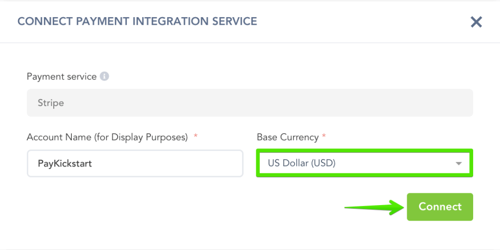 Choose the Payment Gateway you want to integrate with and then select the Base Currency.