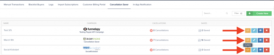 You can now locate the cancel widget you created to access and copy the embed code.