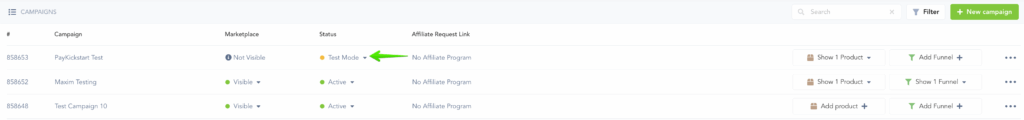 You can set it to Test Mode which means all of your products and funnels will bypass the payment gateway and are designed for initial testing before going live to ensure everything is working as intended.
