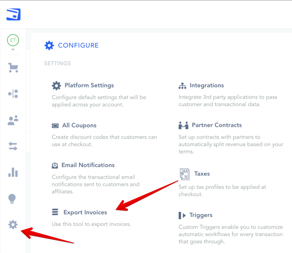 Vendors looking into exporting larger amounts of data now have access to the Configure > Export Data menu. At this time, this section will be used for downloading invoices in bulk, while we plan on adding additional options for easier access to your transaction and subscription-related data in the future.