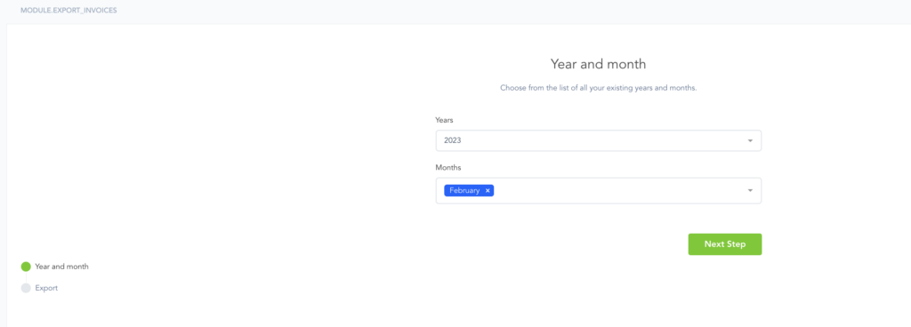 Step 2: Select the Year and a Month you wish to export invoices for: