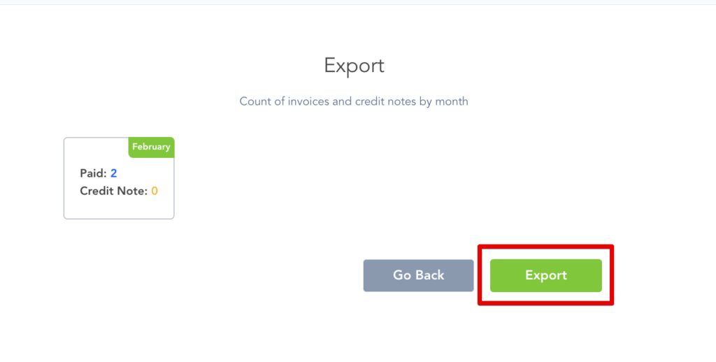 An overview of the content will appear with the total amount of invoices and/or credit notes that are available for exporting.