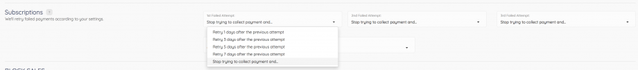 You can set up the frequency schedule for the Subscription Saver by going to your Platform Settings. Locate “Subscriptions” and then you can adjust how you want PayKickstart to handle failed rebills.