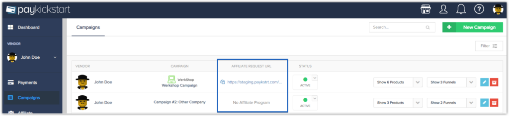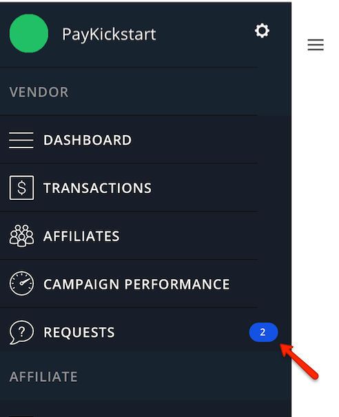 Once the affiliate uses the link to request to promote your campaign, you will see the request in your vendor account.