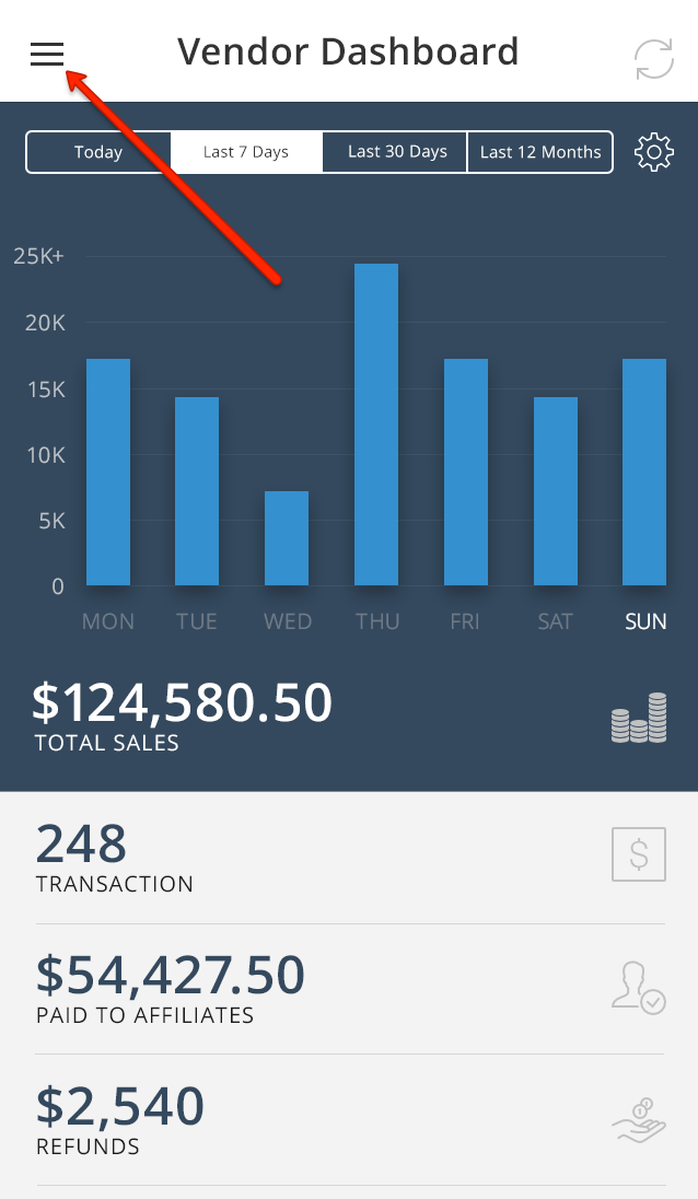 From within the app, locate the menu icon in the top right. Tap the icon.