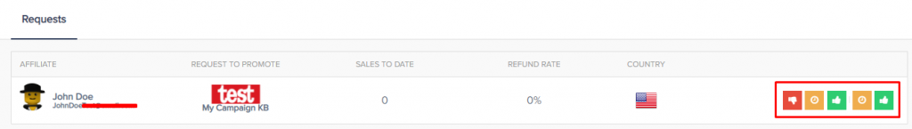 Simply click on the Approval option your wish to approve the affiliate for once the request arrives.
