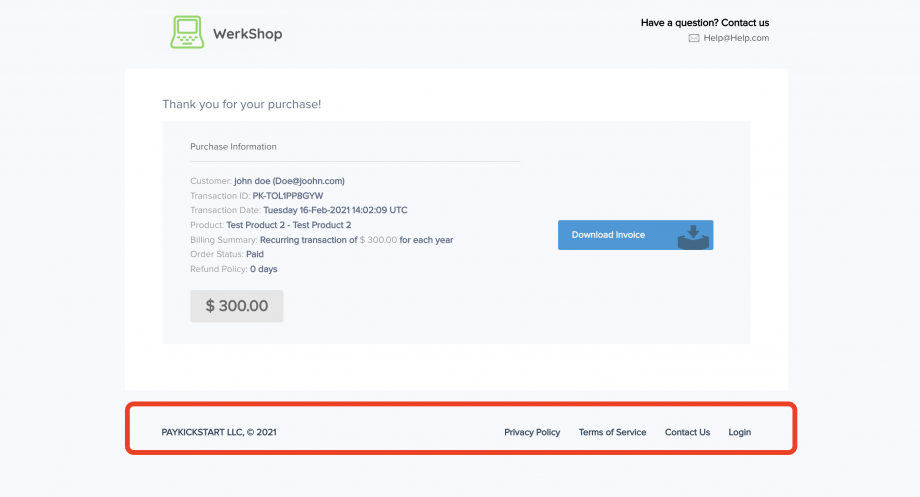 Once added, the PK footer will be hidden on the default thank you page for your customers.
