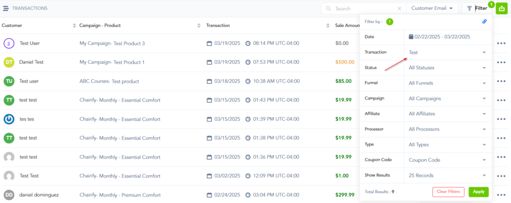 Once test mode is enabled you can run test transactions using the landing page buttons or via the funnel checkout links without the fear of processing a payment. All other integrations attached to the campaign will still trigger for testing purposes.