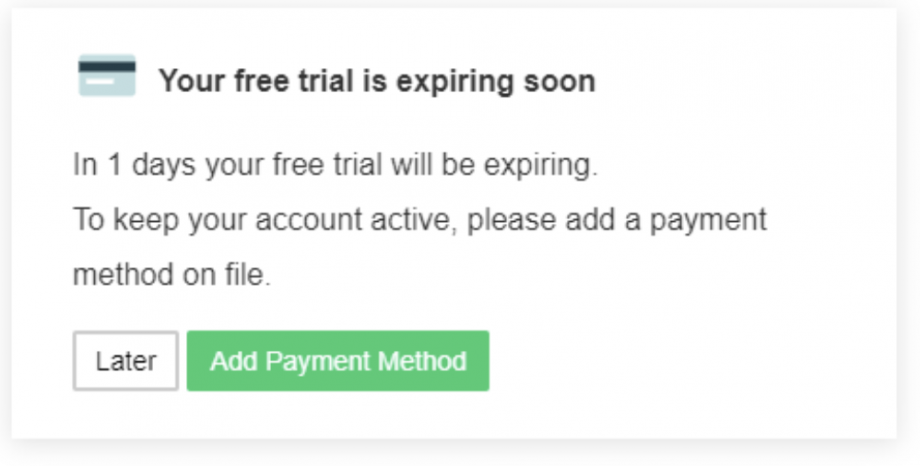 Days Before Trial Expiration(Free Trial Expiring Event): How many days before the trial ends do you want to show the notification?