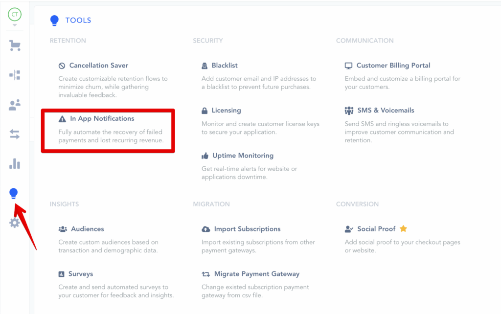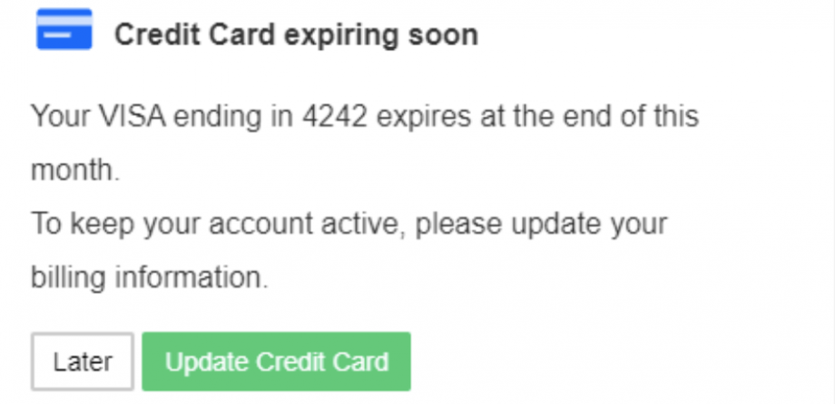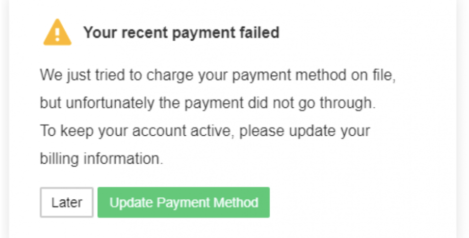 The In-App Notification Widget is a great dunning tool to send your customers important purchase-related notifications inside your site or application to easily complete needed actions right where your customer already was.