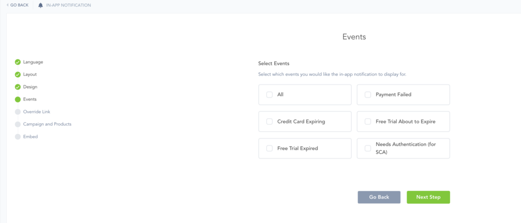 Products: Select the products you want to use with the notifications. Can be one product or any/all products in the campaign.