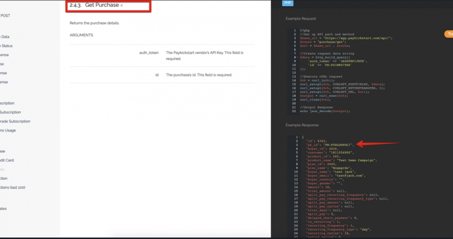 You can use https://help.paykickstart.com/api/#get-purchase to locate the customers $subscriptionPkId