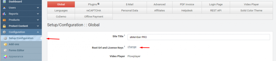 - URL: Press “Save” Go to aMember CP -> Setup -> Global, press “Root Url and License Keys”. This is your URL.