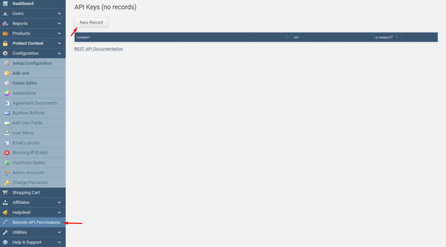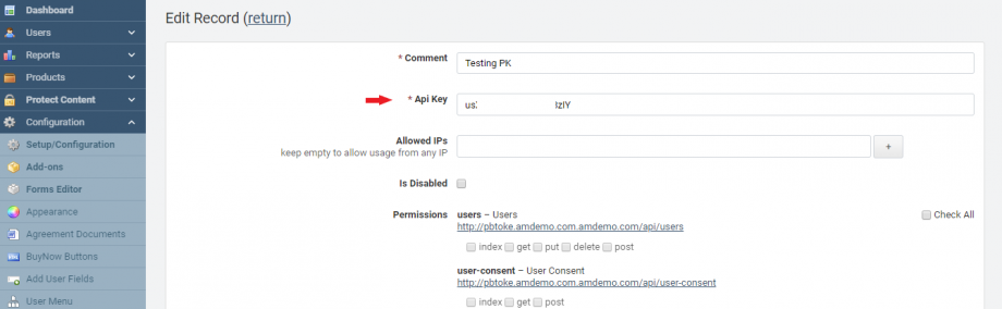 - API Key: Login into the aMember admin area. Go to aMember CP -> Setup -> Plugins, and enable “api” module. Go to aMember CP -> Setup -> Remote API Permissions, and press “New Record” button. Enter “comment”: “aMember-remote key”; This is your API Key.