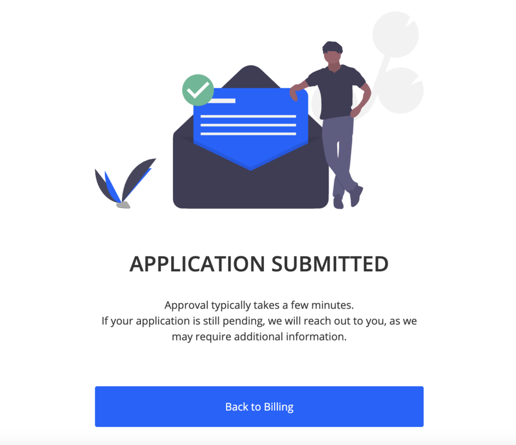 After the application is submitted, you will see this page indicating that the application is now pending for approval. You can go back to the payment integration section to see the status of the CONNECT gateway.