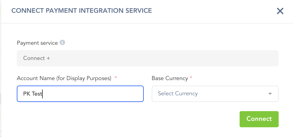Name the account for your reference purposes. Select your Base Currency, then click Connect.