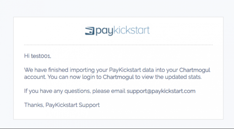 Once the synchronization is complete you will receive an email stating the integration is complete and you can now view analytics using ChartMogul