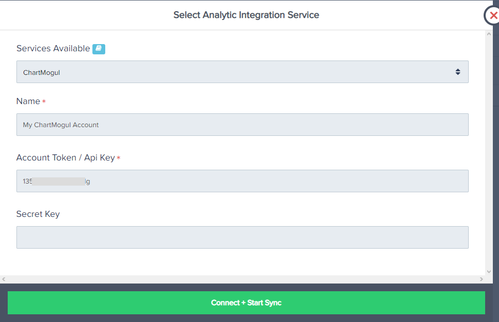 - Please note: If you have integrated with ChartMogul prior to March 2022 using the Secret Key, the integration will still continue to function.