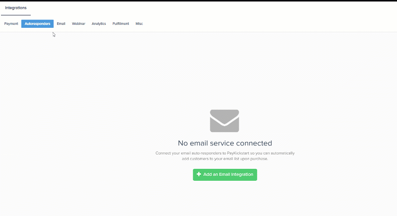 First, you’ll need to integrate on your main integration page. To do so, click on ‘Auto Responder’ at the top of this page.
