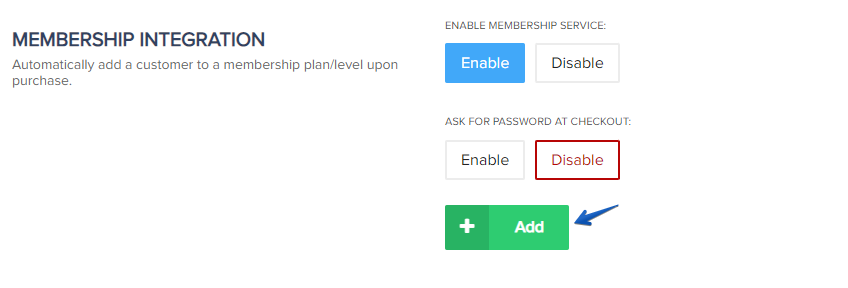 #1: Enable the membership integration option and click the button to Add a new integration:
