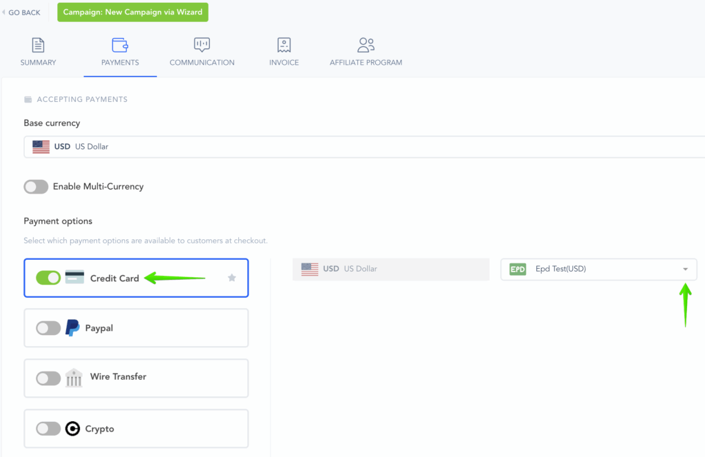 You can follow the instructions below to connect Easy Pay Direct with your Campaigns and Products.