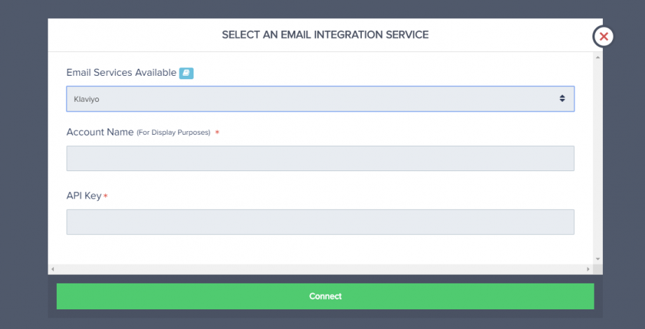 - Choose ‘Klaviyo’ as your email service.