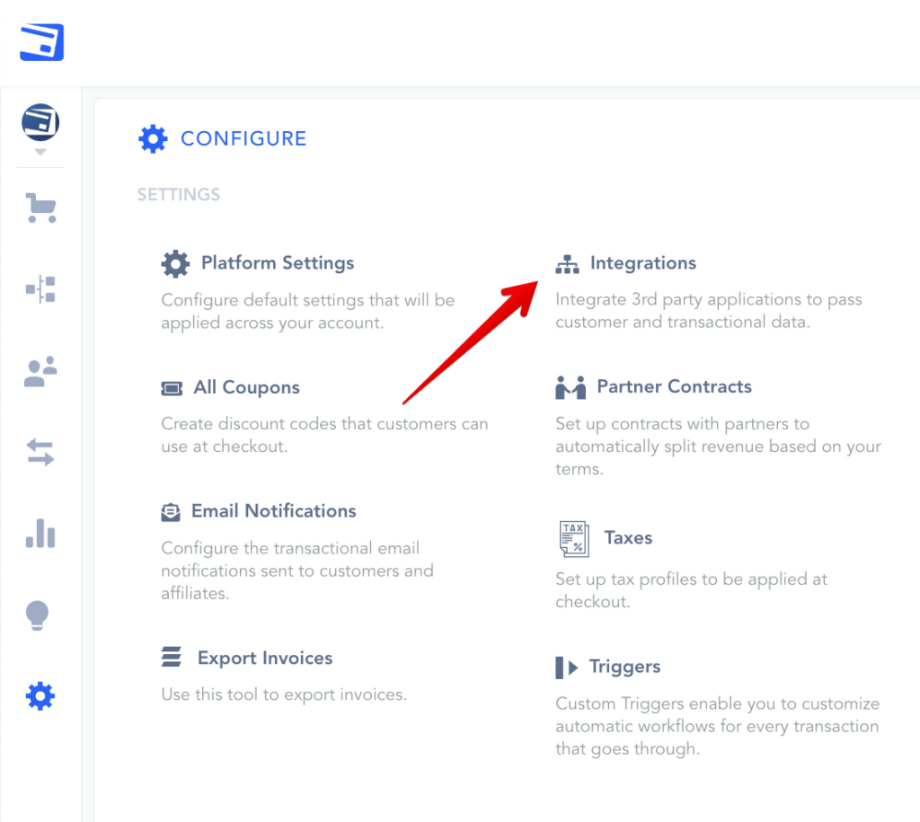 In the Product settings, select Step 3 (Integrations) to open up your integrations information.