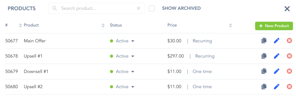 Here, you’ll see your campaigns listed. Choose the PRODUCT that you want to integrate PipeDrive with and select “edit product settings“.