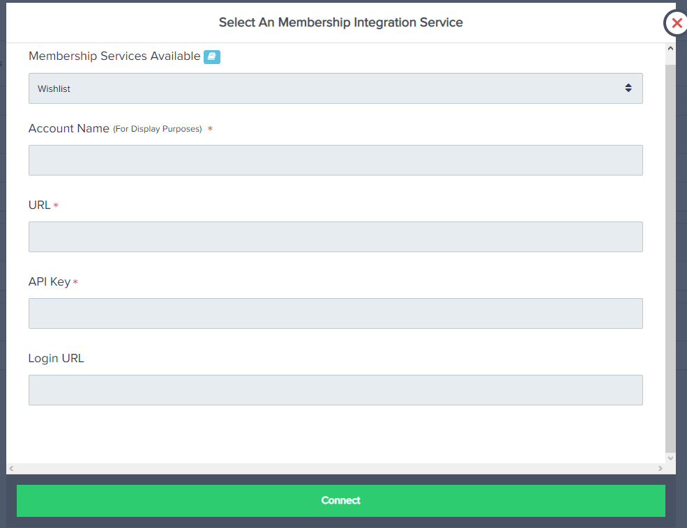 For WishList, you’ll need a URL, API Key, and the Login URL.