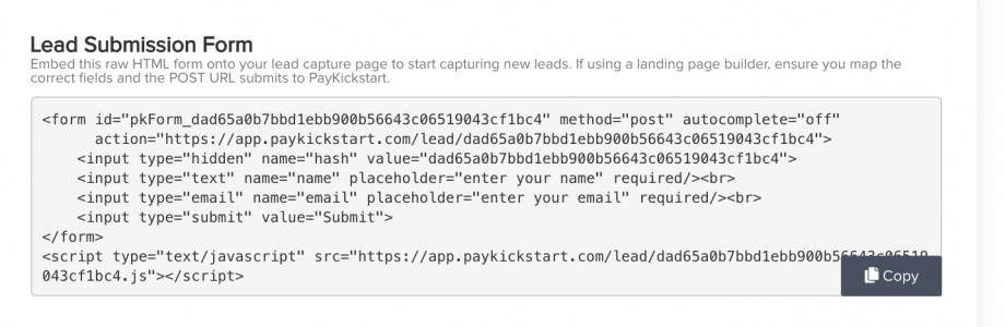 This will be used to add new subscribers to your email list/PayKickstart and track the number of visitors each affiliate sends to your lead generation page.