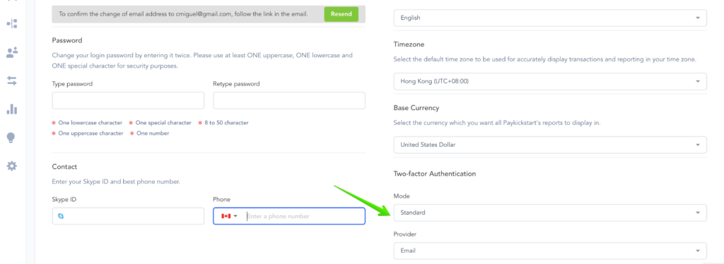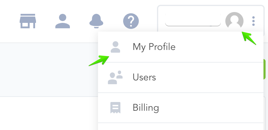 If you are looking into managing your Two-Factor Authentication options, you would access the My Profile section, located in your profile’s dropdown menu at the top right corner of your PayKickstart dashboard.