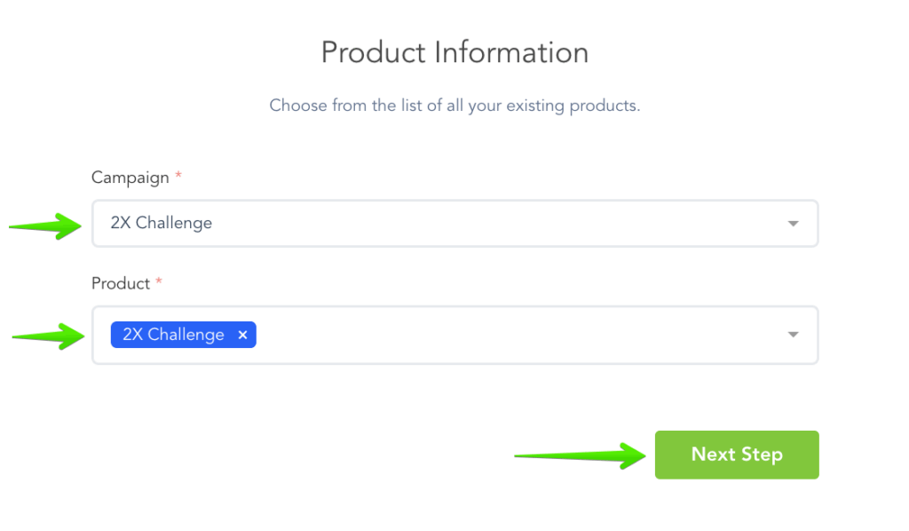Step 2: Select the Campaign and Product you want to associate the transaction with.