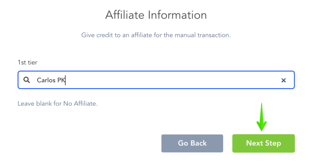 Step 4: If an affiliate needs to be registered for the transaction, you can add them here.