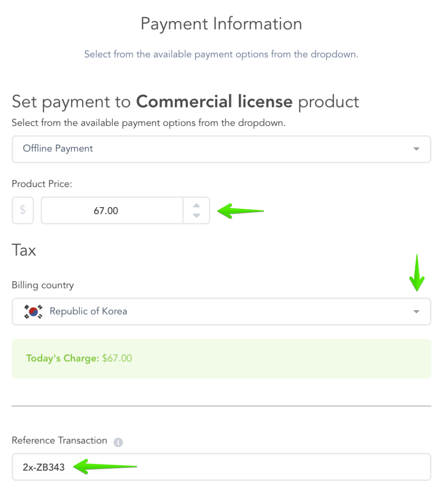 2. Offline Payment: This option allows you to record that a payment was made outside of Paykickstart. You will be able to set the Product Price and the Reference Transaction field allows you to remember how the customer paid.