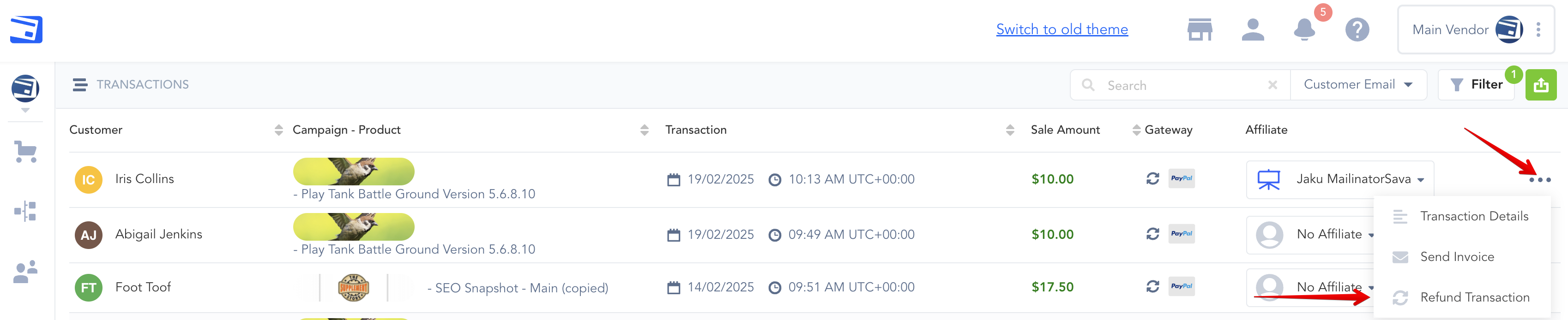 Click the refund button.