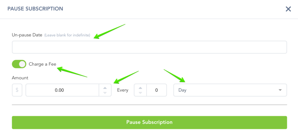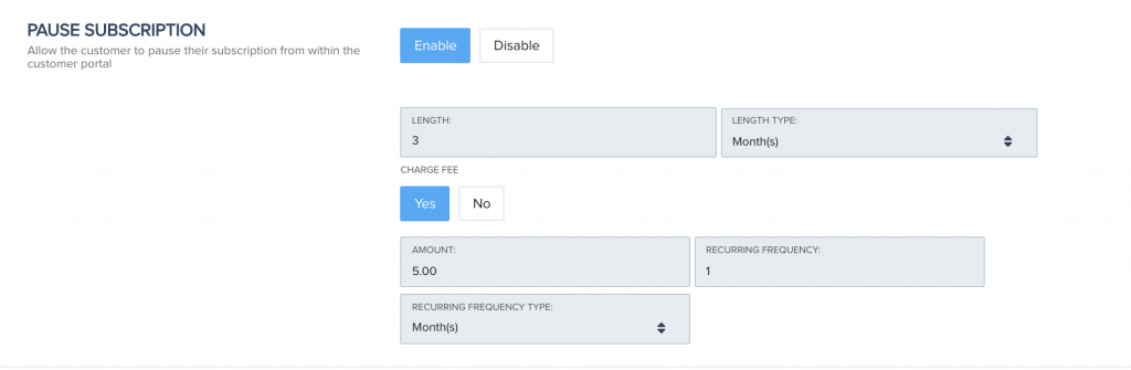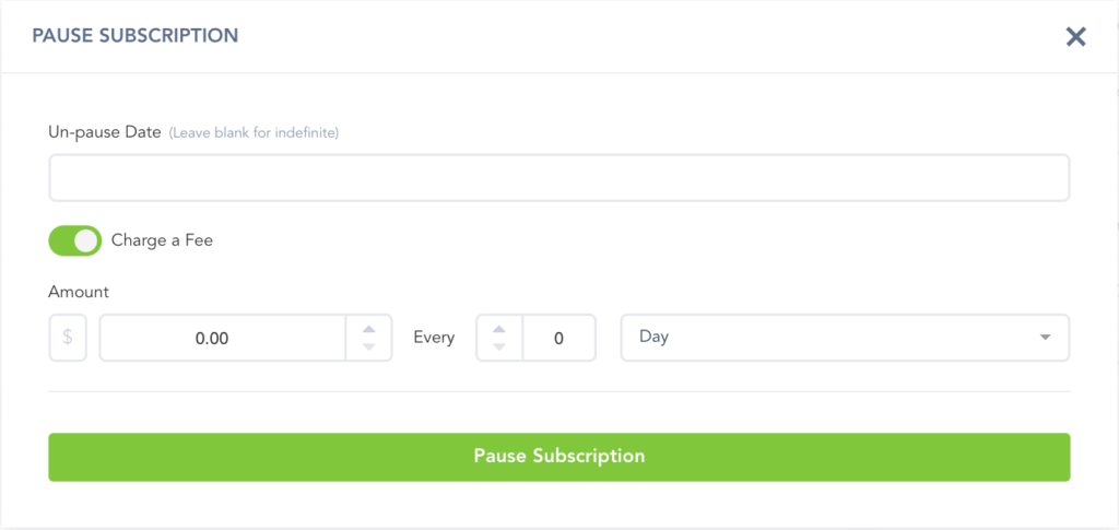 Charge A Fee (Optional): If you want to charge customers for pausing you can enable and set the following options before pausing.