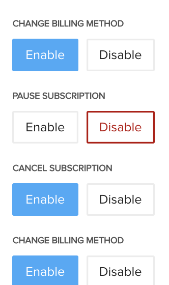 Vendors also have the ability to manually pause or unpause subscriptions, regardless of whether this option is enabled in the customer billing portal.