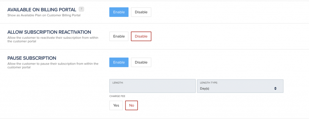 Charge Fee(Optional): Used to charge the customer for pausing subscription.