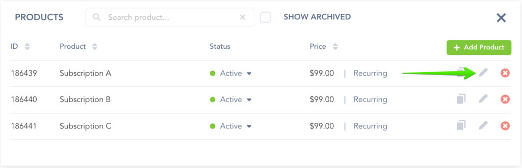 Select the Product for which you want to enable the billing portal option to allow customers to pause their subscriptions.