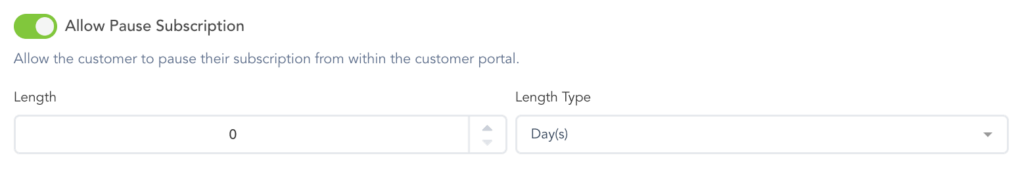 Length will be related to the maximum amount of time the customer’s subscription can remain paused, or the total number of payments for the paused recurring period.