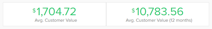 Average Customer Value: refers to all customers created in the filtered date period and is the average value of a customer spending with you. Customers can have more than 1 transaction which increases the metric.
