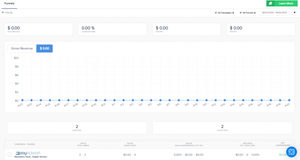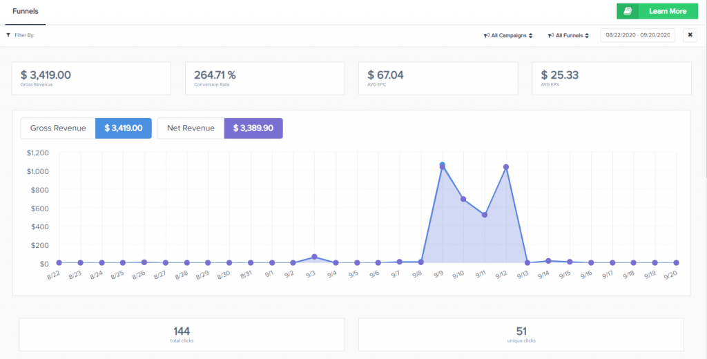 - Avg. Funnel EPC: Gross sales / Unique Visits