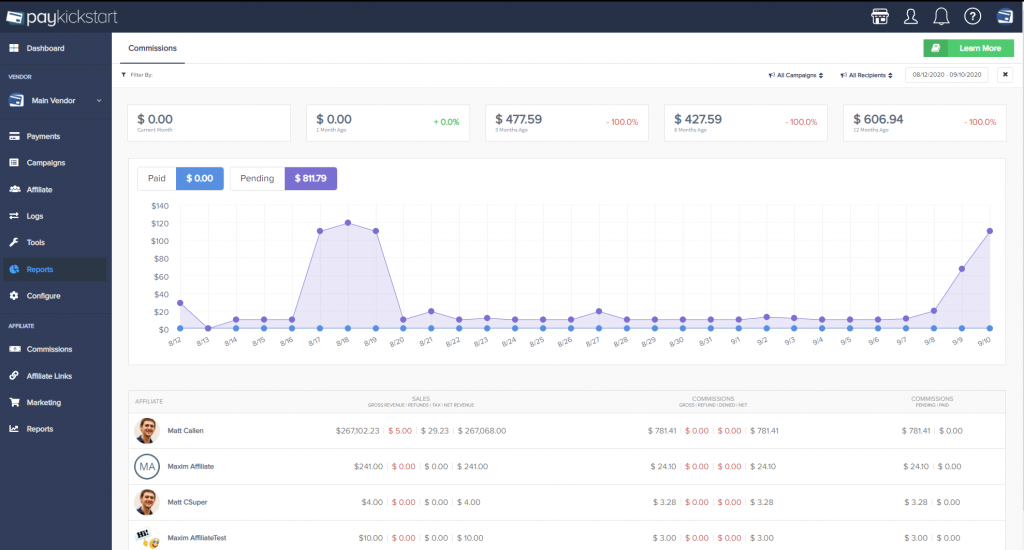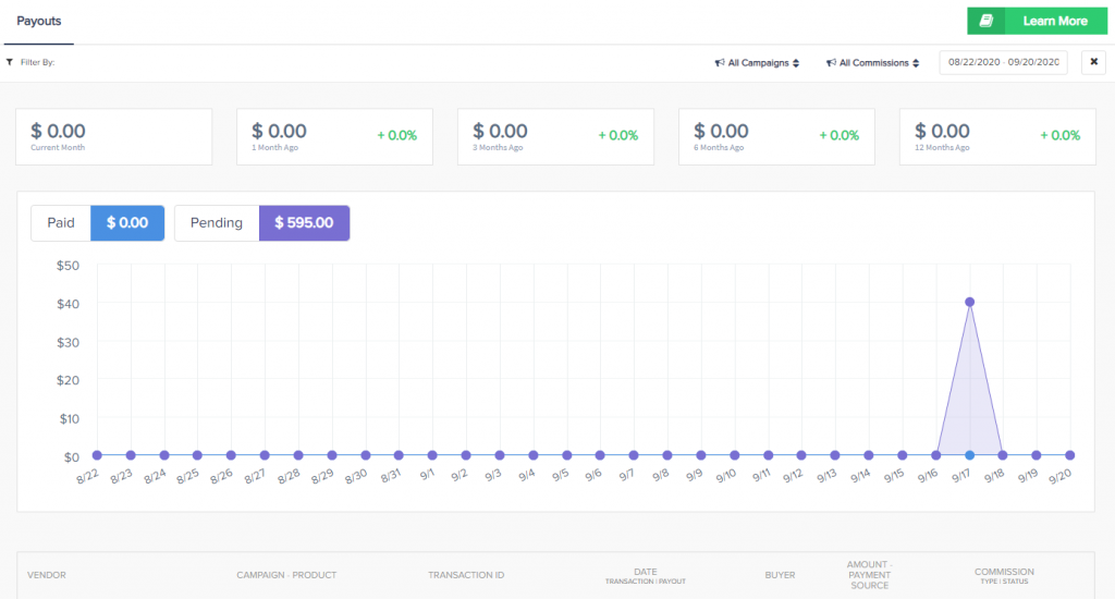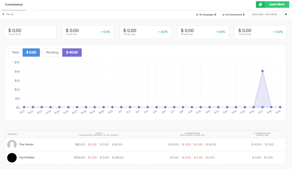 - Pending = Commissions waiting to be paid by the vendor