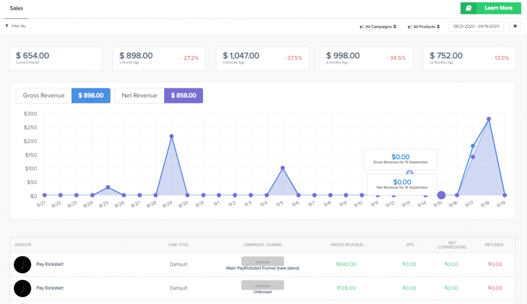 Link: https://app.paykickstart.com/admin/reports/vendor/funnels