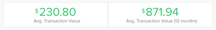 Average Transaction Value: refers to all transactions in the filtered date period and gives you the median value for all of those transactions filtered.