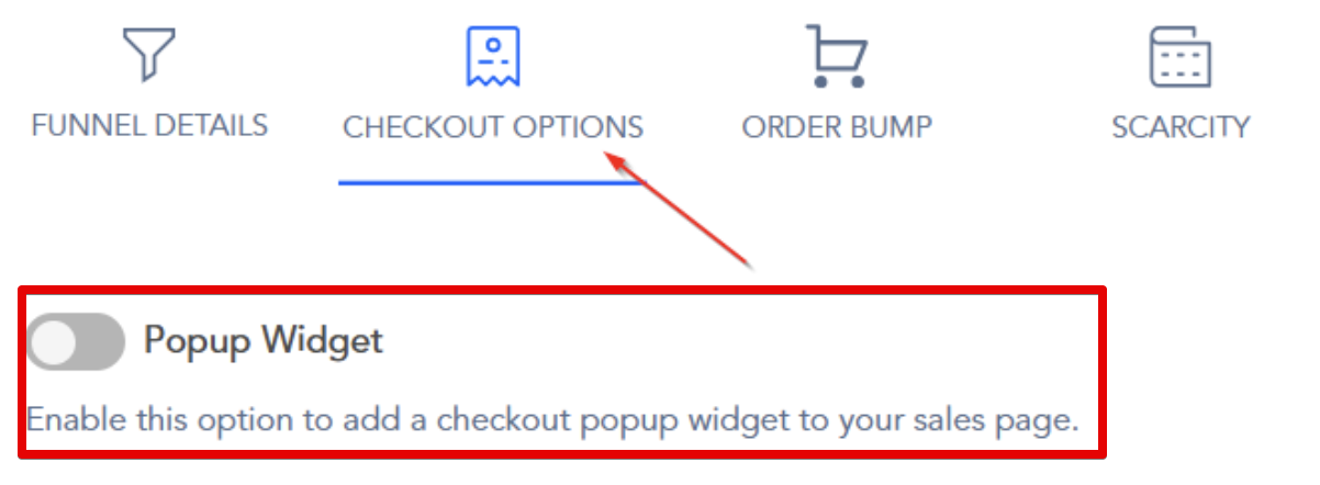 Step 4: Enable the pop-up widget in the Checkout options.